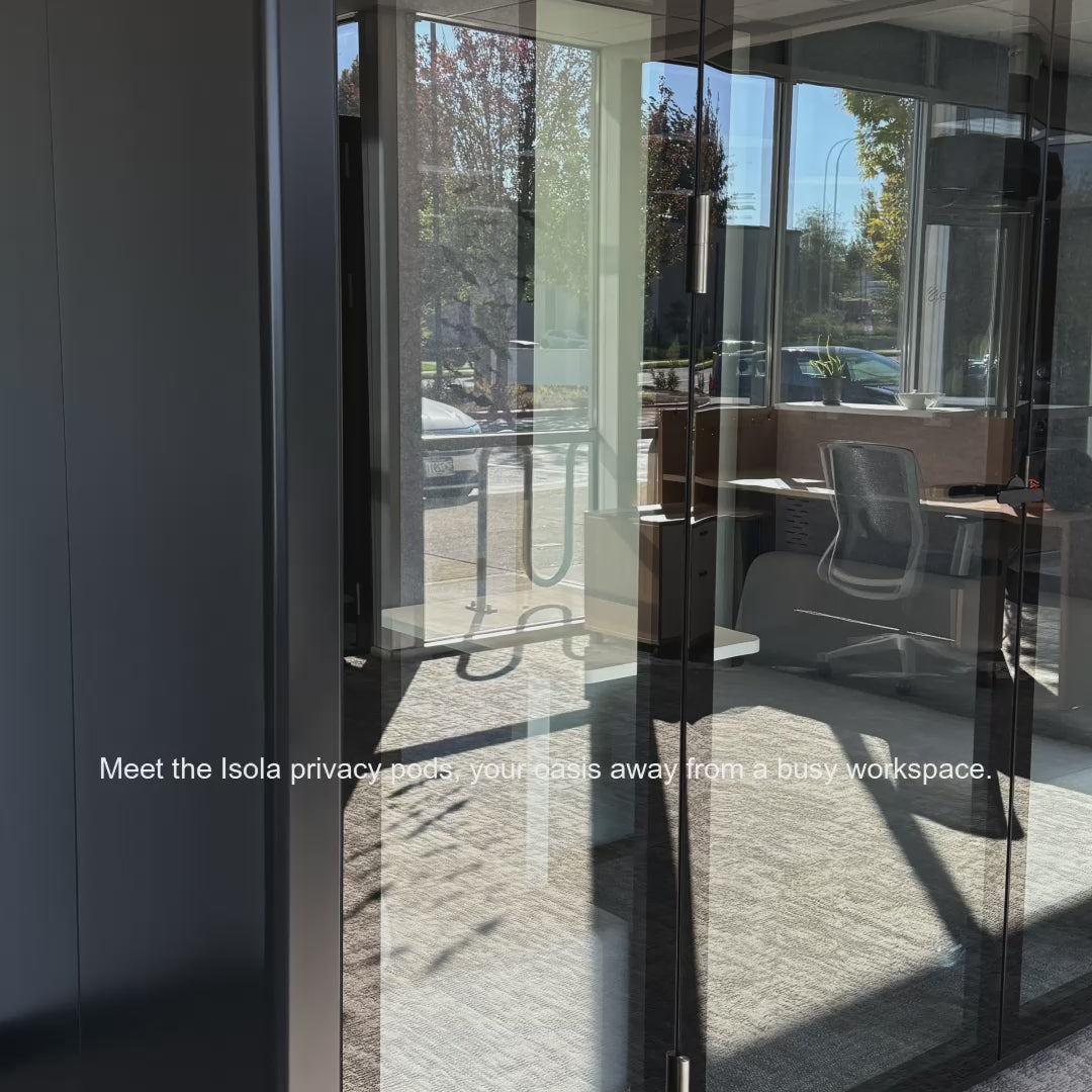 The office privacy pod is a necessity in todays open office environment and the Isola (meaning island in Italian) is designed to provide that secluded island away from the noise so you can make those important calls, have that private meeting, or just get some uninterrupted heads-down work complete in a near soundproof environment.