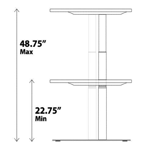 Height Range | 21.75 - 47.75″ including top, leveling feet fully closed, additional 0.5″ height adjustment with leveling feet opened |