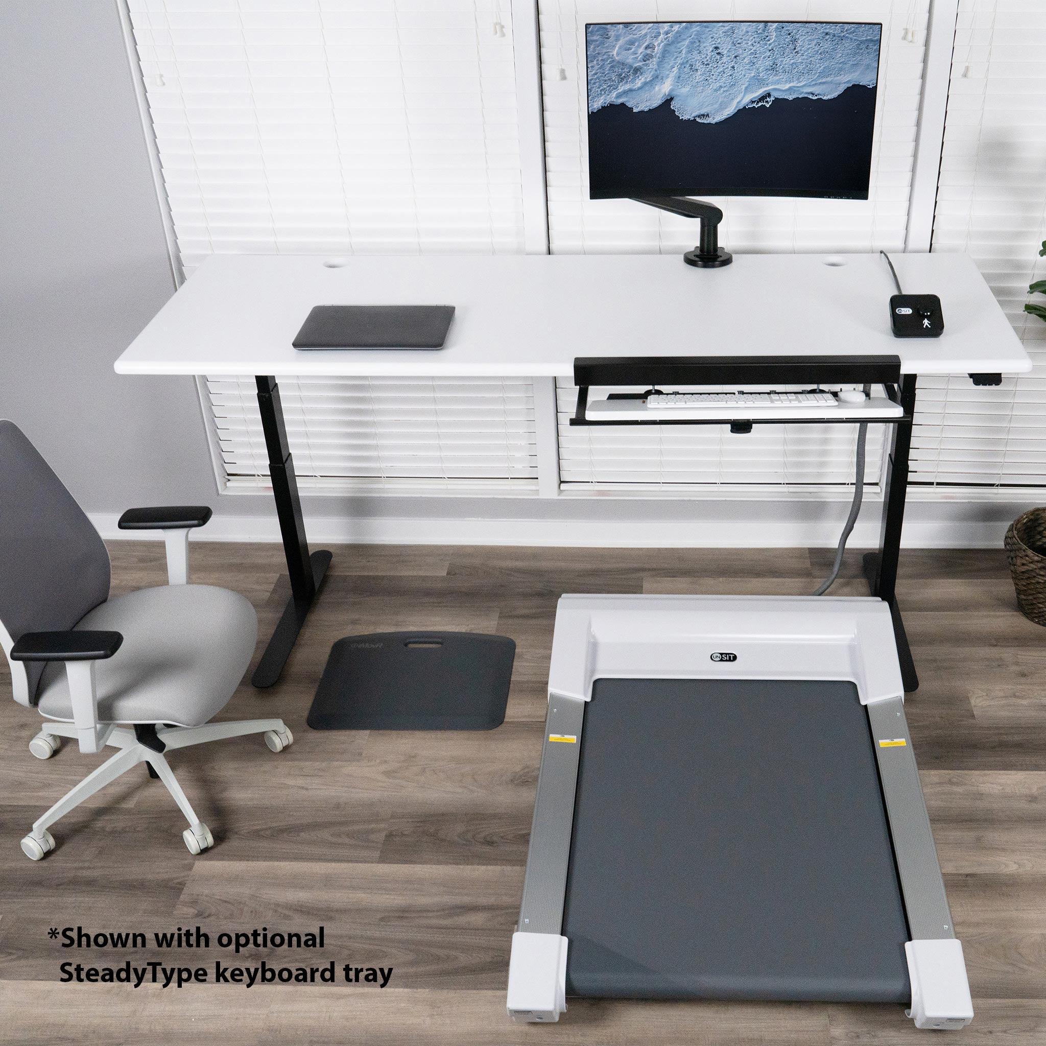 iMovR and InMovement have joined forces to create the highest performance, quietest, safest, most ergonomic, and most stable treadmill desk workstations available today. By pairing the Unsit Office Treadmill to any of our fully customizable standing desks (with an assortment of shapes, sizes, colors, and accessories to choose from), you can create a walking desk that's exactly what you need. Include our proprietary SteadyType™ keyboard trays for the smoothest typing-while-walking experience, anywhere.
